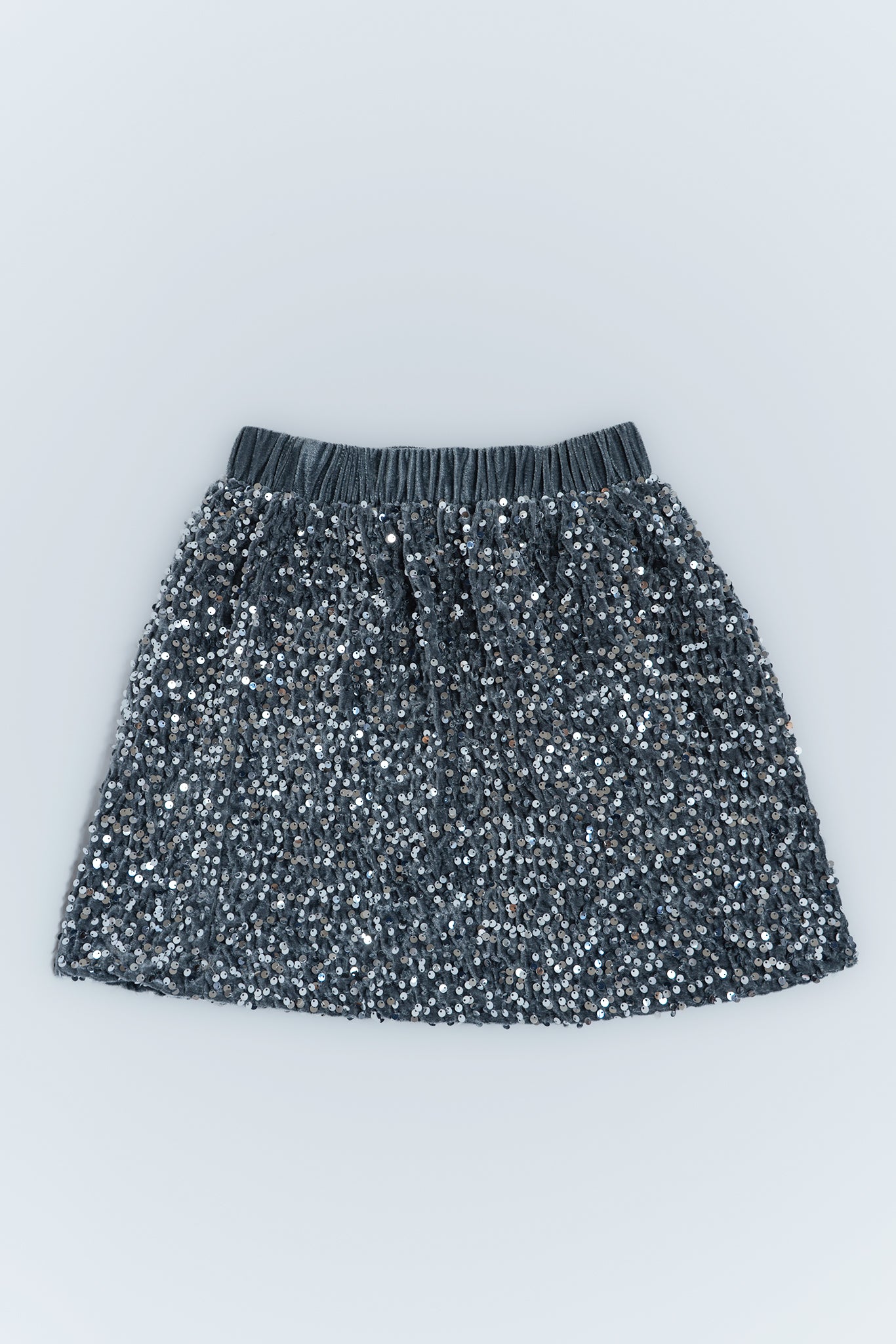 Who doesn't resist this mini sequin skirt? A little bit of A-line makes this skirt look flattering. You can create your K-pop-inspired look with this twinkling skirt! The waistband is made of velvety fabric. You can tuck in a top or not as well.